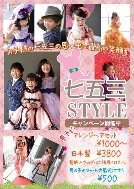 七五三の季節に入ってきました。子供達の思い出に少しおしゃれをしてお出かけ前にセットしてはいかがですか?
