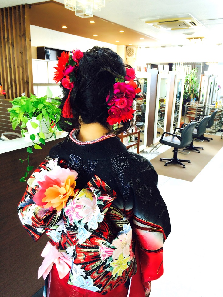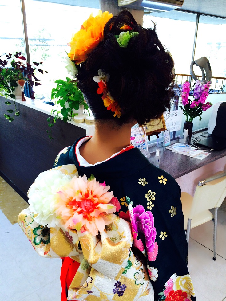 2015年1月12日月曜日成人式朝早くから着付け・セット成人式のお手伝いがんばりました。